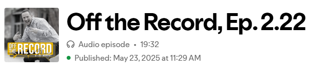 Off the Record - Episode 2.22 BJ and Aleatha answer questions prepared by Destiny and the interns. What happens next is completely UNHINGED! podcastBJ MurphyMay 23, 2025bj murphy, aleatha thrower, podcast, off the record, humor Facebook0 Twitter LinkedIn0 Reddit Tumblr Pinterest0 0 Likes
